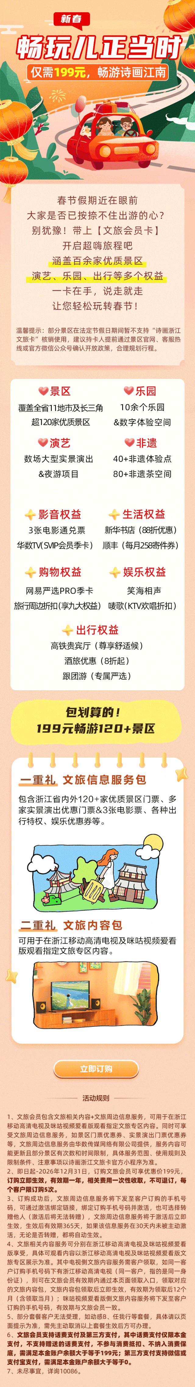 您现在的位置是:首页 > 国内旅游目的推荐 > 正文 国内旅游目的推荐 199元解锁120+景点,省钱省心开启新年之旅~ admin2026年02月12日 17:43:49国内旅游目的推荐9 199元解锁120+景点,省钱省心开启新年之旅~*本期推文相关业务及活动适用客户范围、详细规则、退订方式、违约责任等详情,参见活动办理页面,也可咨询当地移动营业厅或登录中国移动APP。 你有在看吗↓ 转载请说明来源于"旅荐网",部分内容转载自网络,如有侵权请联系qlwl@foxmail.com删除 本文地址:https://www.15386.cn/post/103497.html 上一篇 2026春节西江千户苗寨景区指南,交通、入园、行李配送全攻略,一站式解锁年味苗寨 下一篇 旅游安全实务手册 I 应对人祸:预防为主,智慧脱险 相关文章 花好几天做了自驾路线小程序,为啥没人用?说句实在的 2天1晚乌镇春季旅行攻略,体验水乡江南 烟台牟平区十大必游景点推荐,一日游玩尽兴全攻略! 海南五指山市旅游攻略十大必去景点推荐,一日游好玩之地全在这! 文化和旅游部|文化和旅游部办公厅关于申报“人工智能+文化和”应用试点的通知 三月的婺源绝美之旅游攻略3天!!! 海口旅游攻略十大必去景点,一日游好玩之地都在这里! 烟台蓬莱区旅游攻略必打卡十大景点推荐,一天畅玩全推荐! 清明出游安全指南清明出游必看!3件事不做可能让你损失惨重 清明三天两夜旅游计划四个推荐地 发表评论 取消回复 评论列表 这篇文章还没有收到评论,赶紧来抢沙发吧~