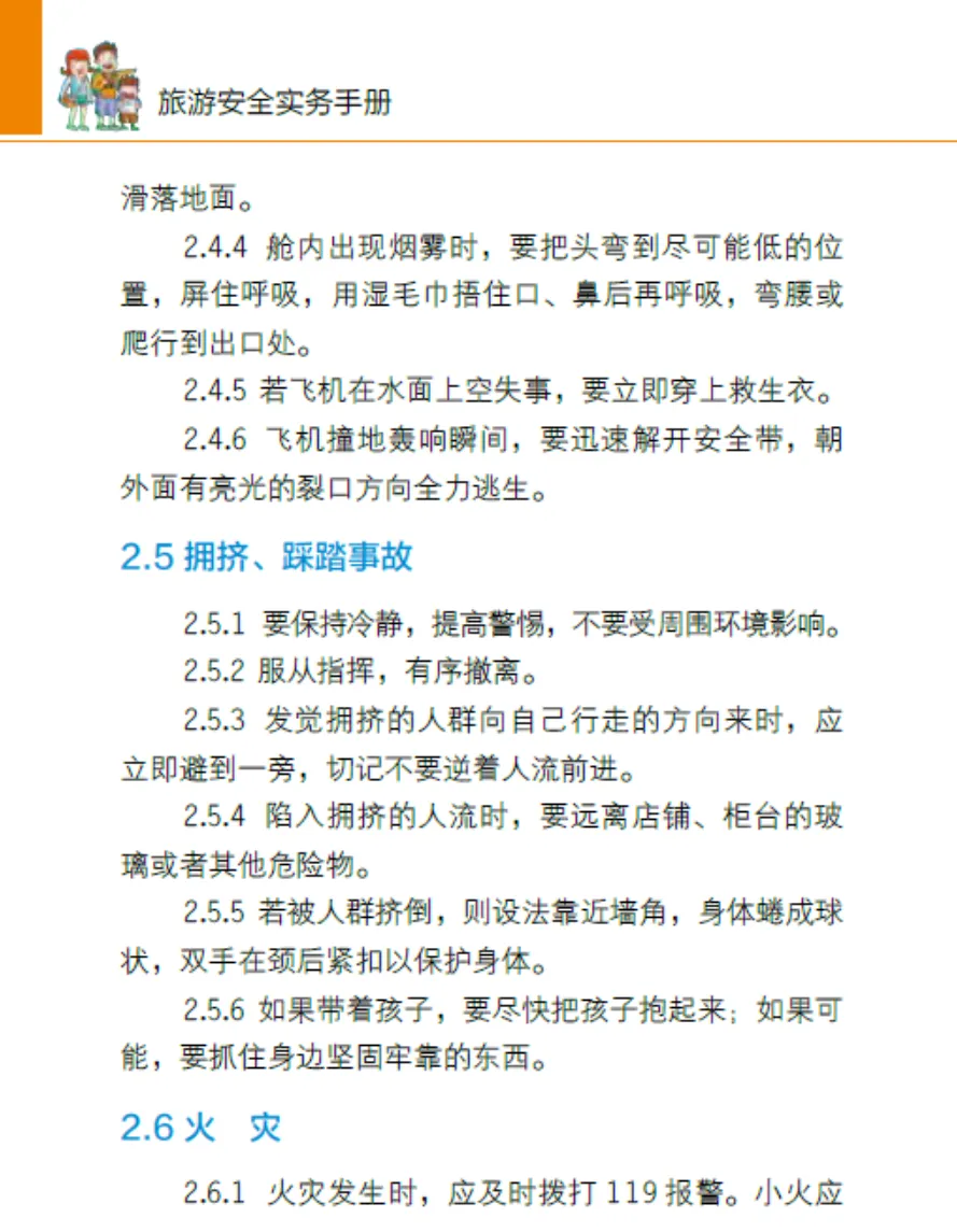 拥挤踩踏: 保持冷静!别逆人流。站稳防跌倒。若跌倒,蜷缩护头颈,设法靠近墙角。