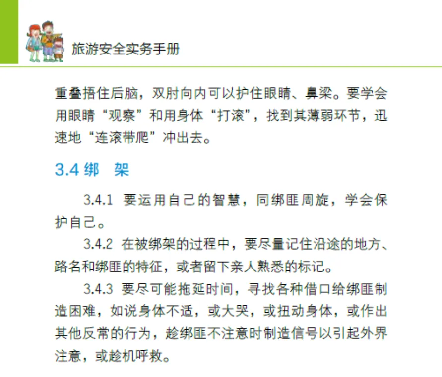 遇绑架:智斗周旋,保护自己,记路线和特征,制造求救信号。