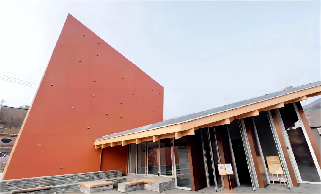 瓦美术馆坐落于渤海镇北沟村,背靠慕田峪长城,地处群山环抱的京郊古村之中,是乡村振兴与现代艺术深度融合的标杆文化空间。该馆由2049投资集团打造,总建筑面积约660平方米,建筑以极具辨识度的红色砖墙 + 金色琉璃瓦为外立面,呼应北沟村曾经兴盛的琉璃瓦厂历史,将乡土记忆与当代美学完美碰撞。
