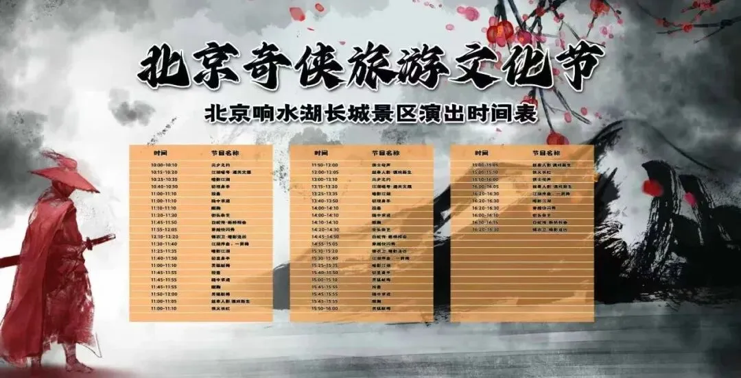 2月14日-3月3日,古风梅花奇侠演出每日4场、20余个节目轮番上演。以长城为幕、梅花为景,仙侠与武侠不倒翁互动迎客,第3场更有赠梅环节;踏鞠、投壶等非遗互动,《白蛇传·断桥相会》等情景表演,搭配胡旋舞、偶戏及NPC穿梭互动,打造沉浸式“梅韵江湖”。