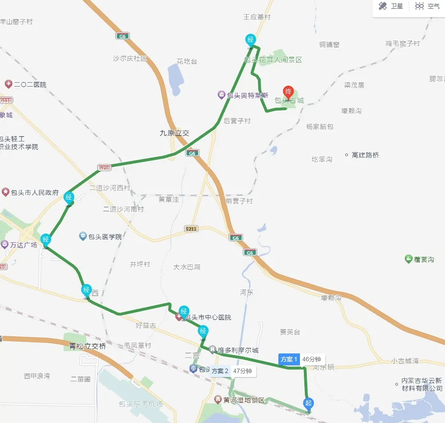恰特公交站—白云路—钢铁大街—富强路—文化路— 青山路(东河区吾悦广场)—包头金街