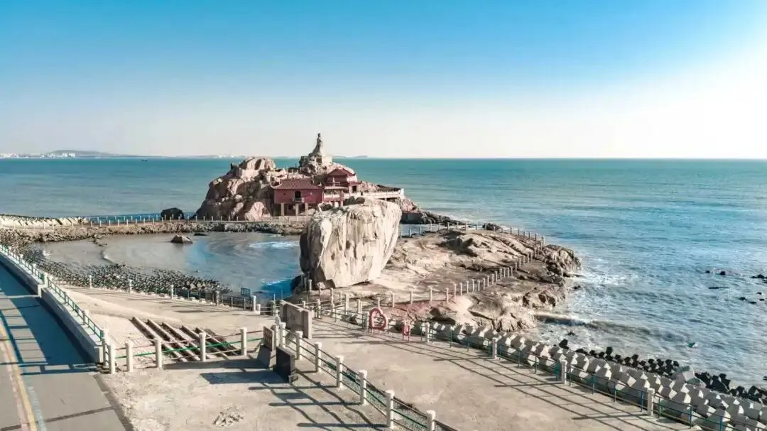 十七孔围垦堤坝东北隅的一块神奇礁岛,它因南宋杨太妃的传说而得名,有巍峨的双帆石和庄严的妈祖像,承载着悠久的历史文化与美好的祈愿。