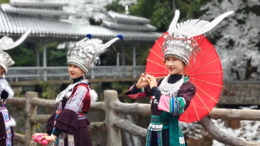 2026年春节,融水梦呜银饰山水全新亮相,苗寨民俗大戏同步开演,带你沉浸体验浓郁苗族年味。