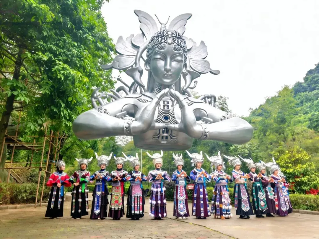 景区内名为“哒配响”(苗语谐音“银姑娘”,简称“配响”)的塑像更是点睛之笔。她是苗族姑娘的美丽化身,象征着苗家儿女对新时代美好生活的向往,承载着苗族人民富裕安康的祈愿,更寓意着养生驱邪、吉祥如意。