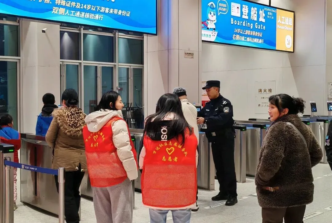 在警务力量护航的同时,来自伍家岗区的志愿者们主动加入服务队伍,与民警并肩作战,成为三峡旅游服务的“暖心名片”。志愿者们在游客中心大厅、码头候船区、游船上下客点提供引导咨询、行李搬运、文明劝导等服务,耐心解答游客关于航线规划、票务信息等问题。