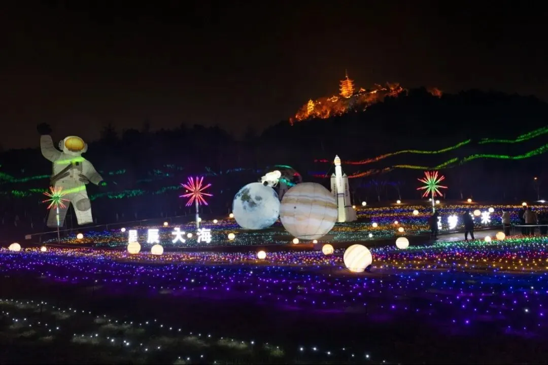 内容:狼山新春灯会设有三大主题展区,《以梦为马》《花仙胜境》《招财纳福》等多重灯组交织成璀璨光影世界,夜晚更显梦幻,演绎浓浓吉祥年味。夜幕星河之下,科技赋能传统,虚实交融,点亮专属于狼山的新春光影盛宴。