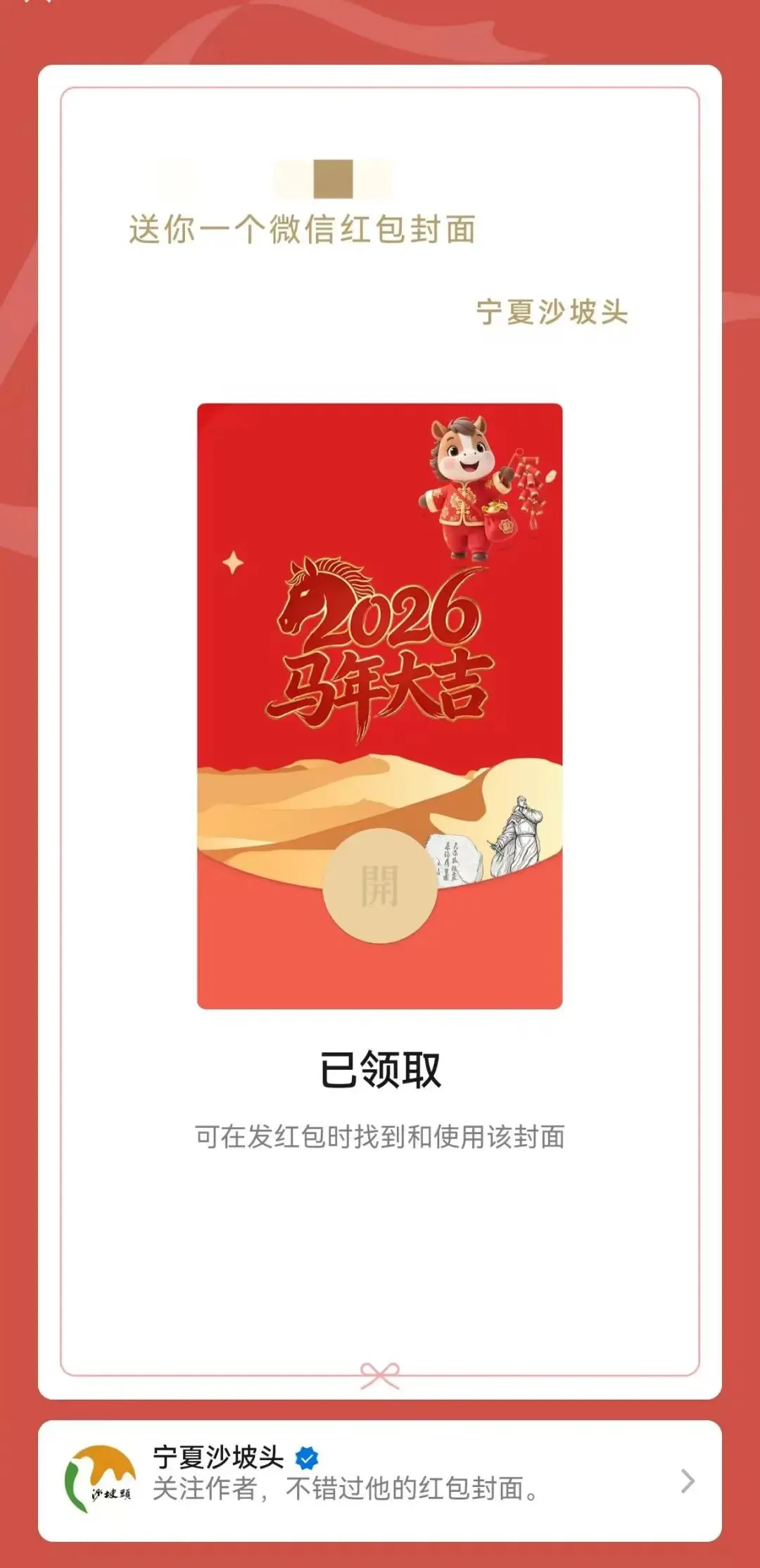 领取沙坡头专属红包封面