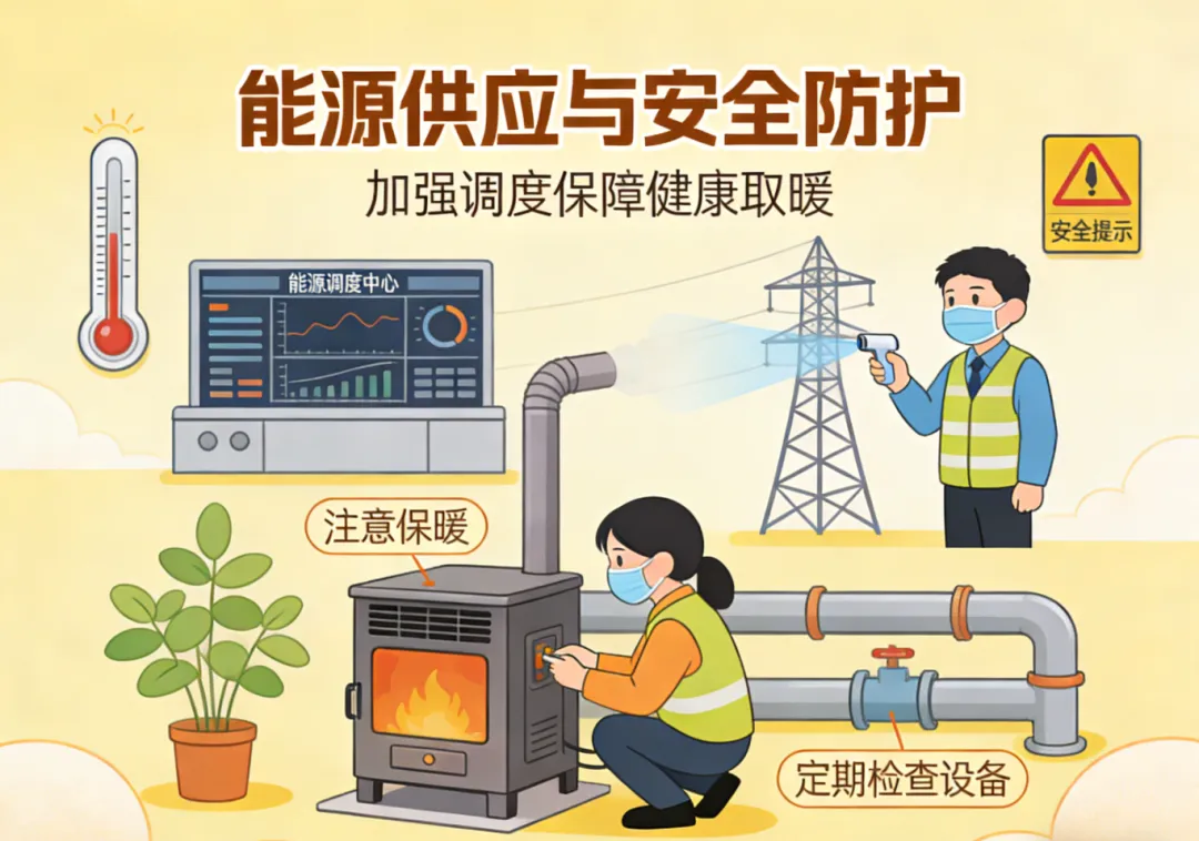 春节假期15日至17日(农历腊月二十八至大年初一)气温降幅大、体感温度低,加之返乡人员增加,取暖用电需求大,需注意加强电力供应调度及公众取暖安全宣传。敏感人群需注意防护气温剧烈变化可能引发的呼吸道、心脑血管疾病。