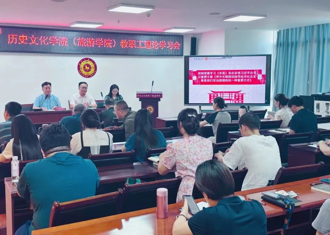 为持续深入学习贯彻习近平新时代中国特色社会主义思想,切实提高教职工思想政治素质和政策理论水平,不断创新教职工政治理论学习方式方法,6月17日,历史文化学院(旅游学院)召开教职工理论会议。本次会议学院特邀联系校领导李耿年参加并授课、学院全体教职工参会。党委书记张春祥主持会议。