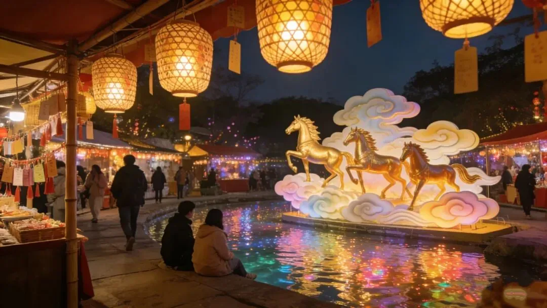 慢赏花样水景、竹编灯笼,打卡马踏祥云氛围装置,当市集被梦幻光影点亮,许愿、漫步、发呆都变得浪漫。