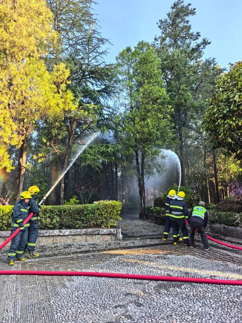 为快速落地会议部署要求,强化实战应急处置能力,2026年2月12日上午,景区服务管理中心联合古城消防救援中队在狮子山景区开展春节前消防安全实战化演练。演练围绕火情预警响应、人员疏散、初期火灾高效扑救、消防器材规范实操等关键环节,开展全流程实景化推演。消防中队指战员现场示范消防水泵等专业器材的规范操作流程,组织参训人员分批实操实训,通过实战化模拟处置,全面提升了景区应急队伍的快速响应、协同作战与现场处置能力。