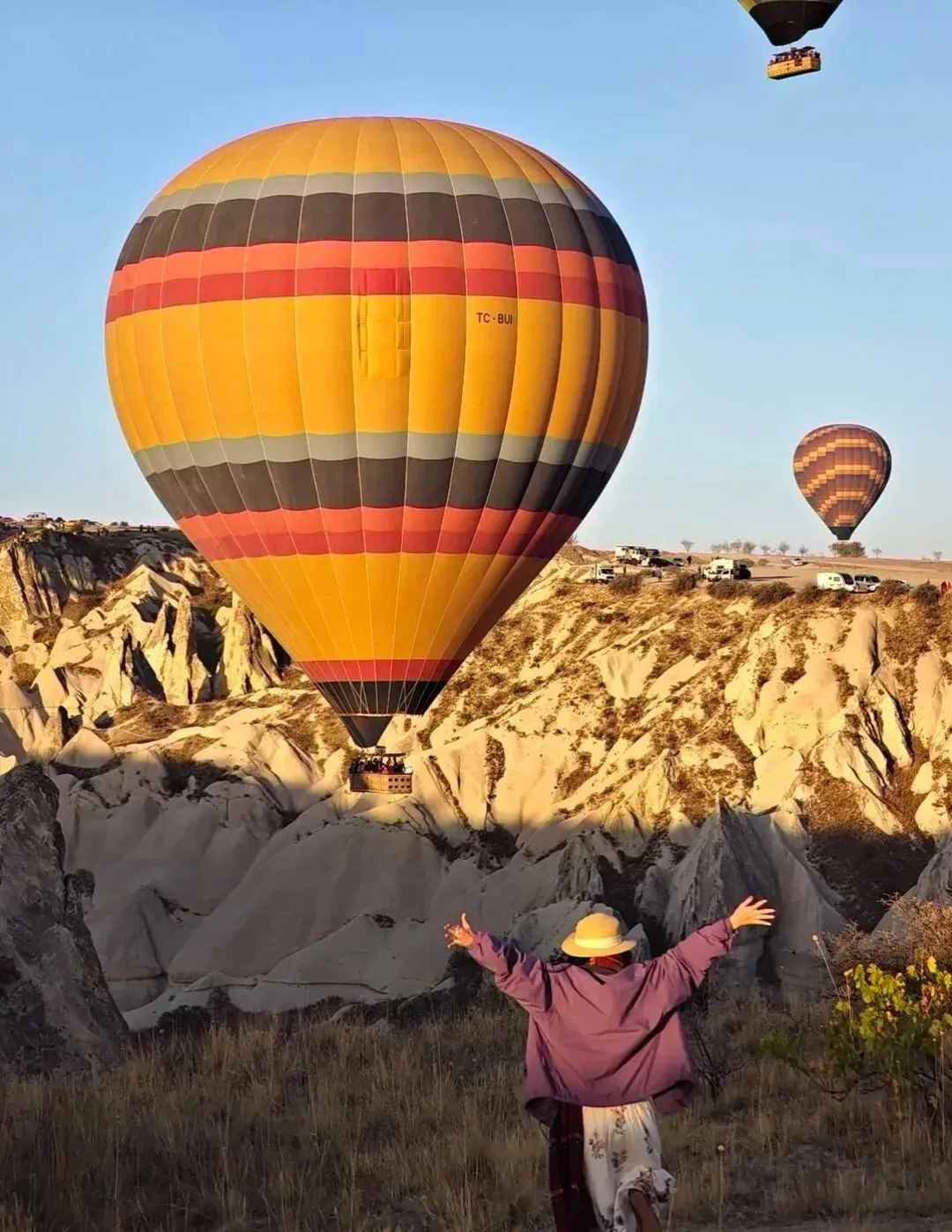 数十个热气球同时漂浮在岩石峡谷之上,