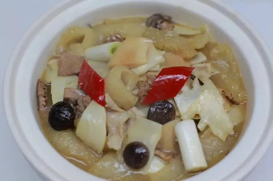 黄焖甲鱼:取鲜活甲鱼,以黄焖古法精心烹制。裙边软糯胶质丰盈,肉质紧实细腻,汤汁金黄浓郁,鲜香四溢。温润滋补,为宴席增添贵气的养生臻品。
