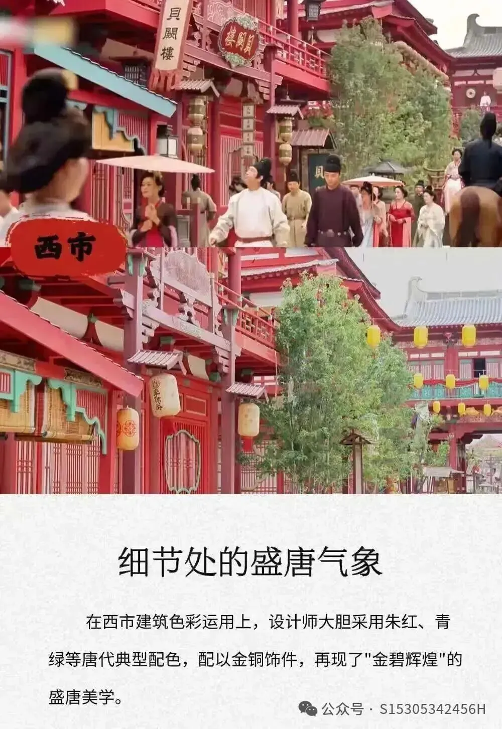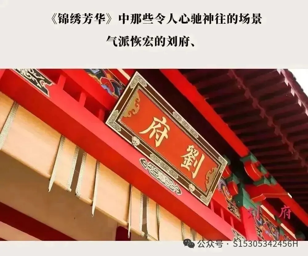 《国色芳华》的拍摄地,朱红门扉的仿古楼阁,悬挂的红灯笼和流动的彩带在风中摇曳,与古建筑相映成趣,营造出一片欢乐祥和的氛围。