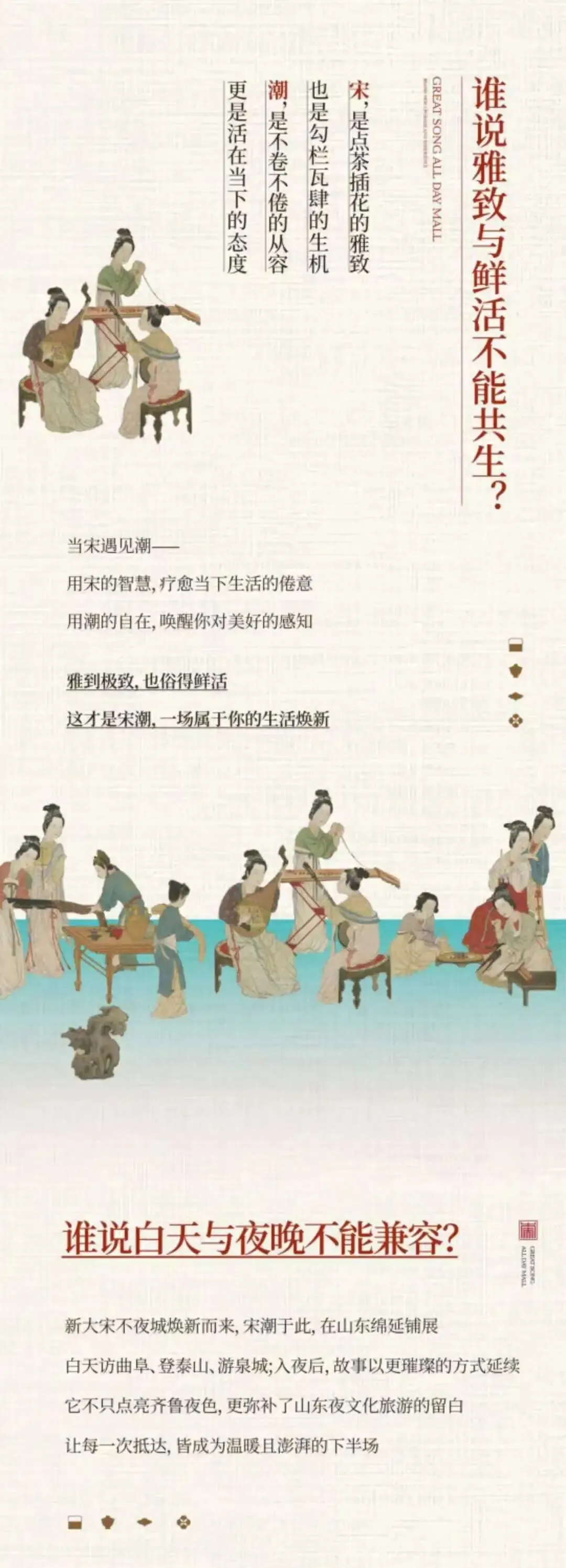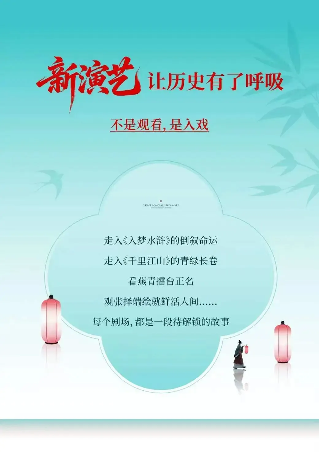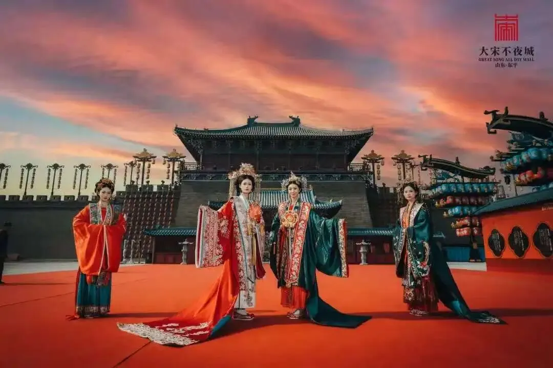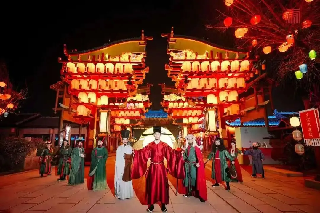 早上指定地点集合,乘车前往东平,游览【大宋不夜城】,景区以《东京梦华录》的繁华记载为蓝本,托影视基地留存的仿宋古建筑群,融合了浩荡的黄河文明、通达的运河智慧与豪迈的水浒侠义,共同编织出一座“灯火不熄、戏梦不绝”的雅俗共生之境。我们的核心,是打造中国首个以 “超沉浸NPC互动”为核心的宋潮生活体验馆。在这里,您将不再是旁观者,每一位都是这宋潮生活的主角,是词客,是商贾,亦是江湖人。现在,就让我们循着这条沉浸式主线,开启一场跨越千年的宋潮旅程。