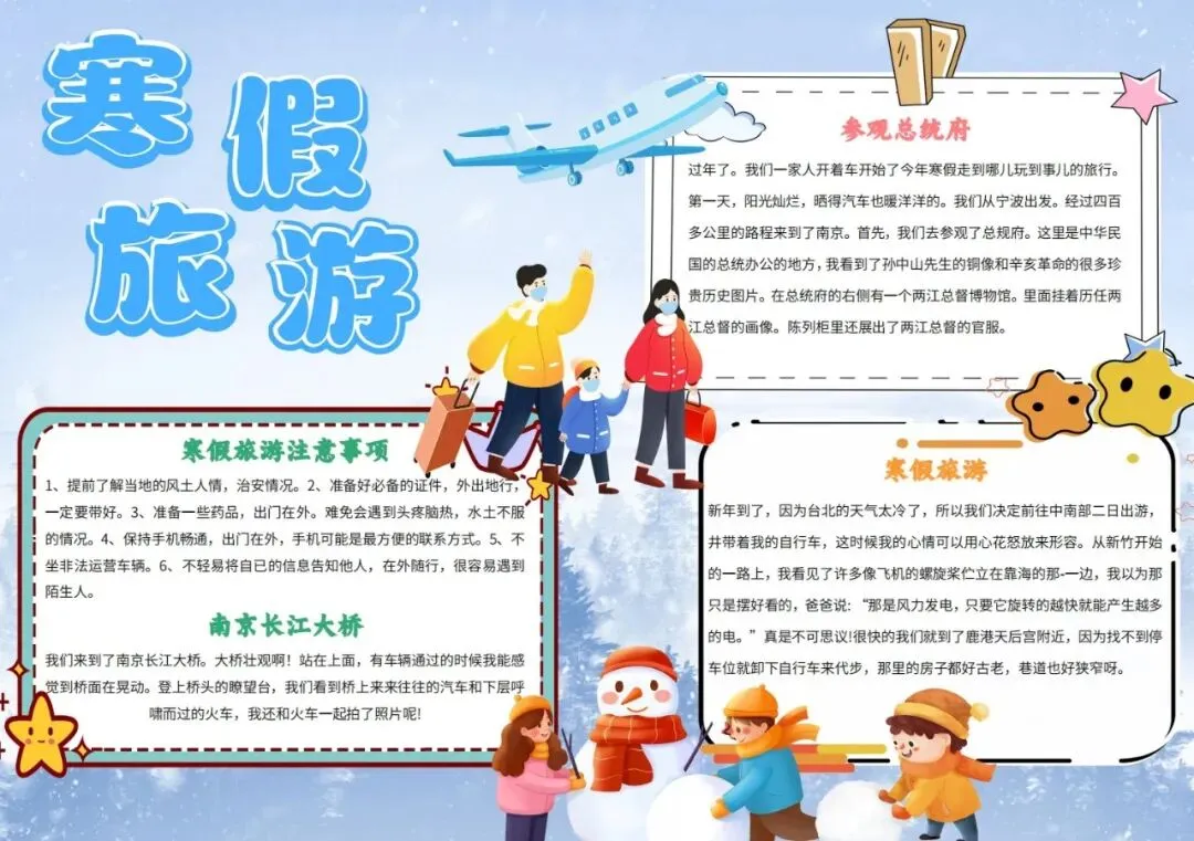 蓝色卡通寒假旅游小报手抄报卡通小报手抄报