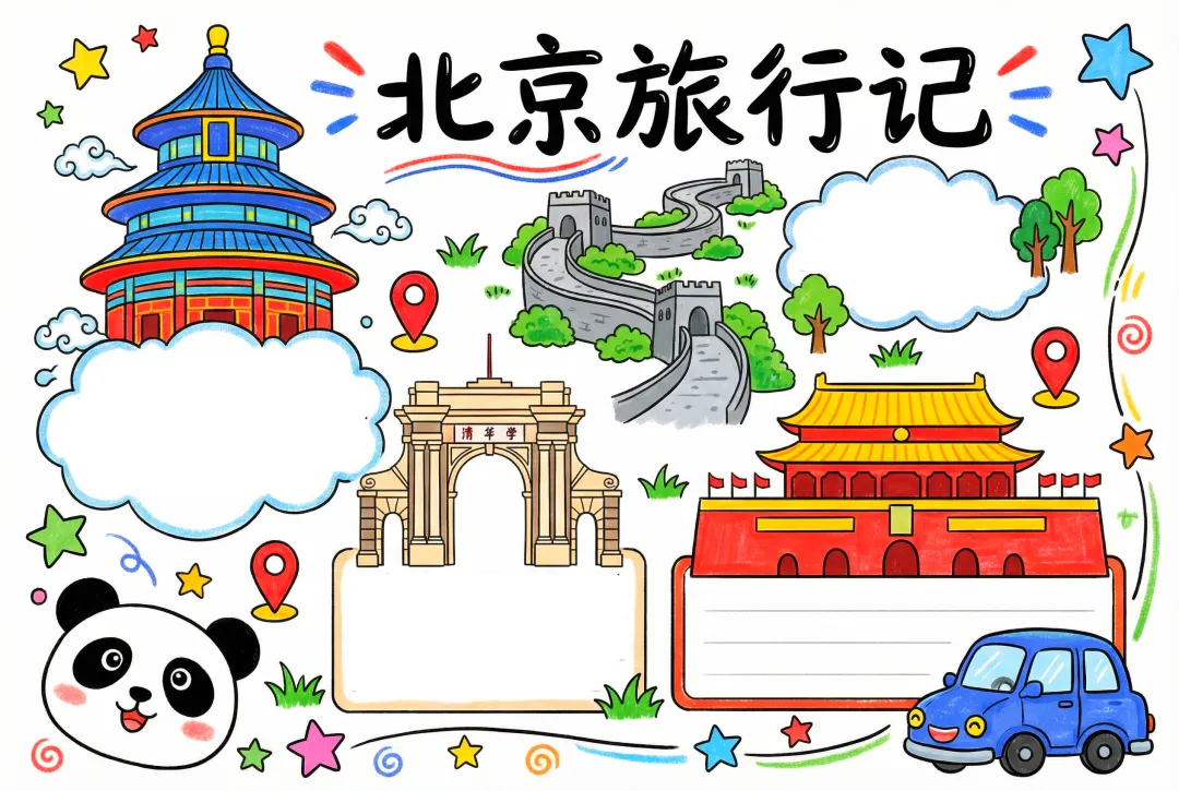 寒假旅游彩色卡通手绘北京旅行记小报手抄报
