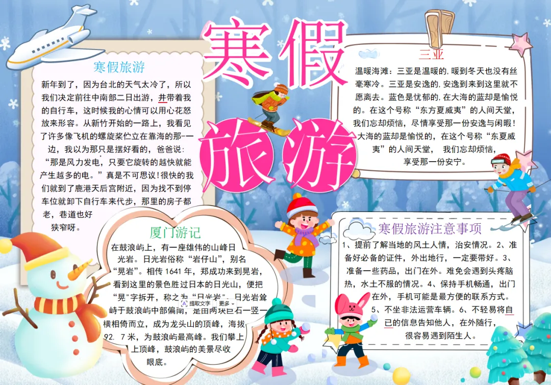 ◆本期分享:寒假旅游寒假生活手抄报模板(10套)