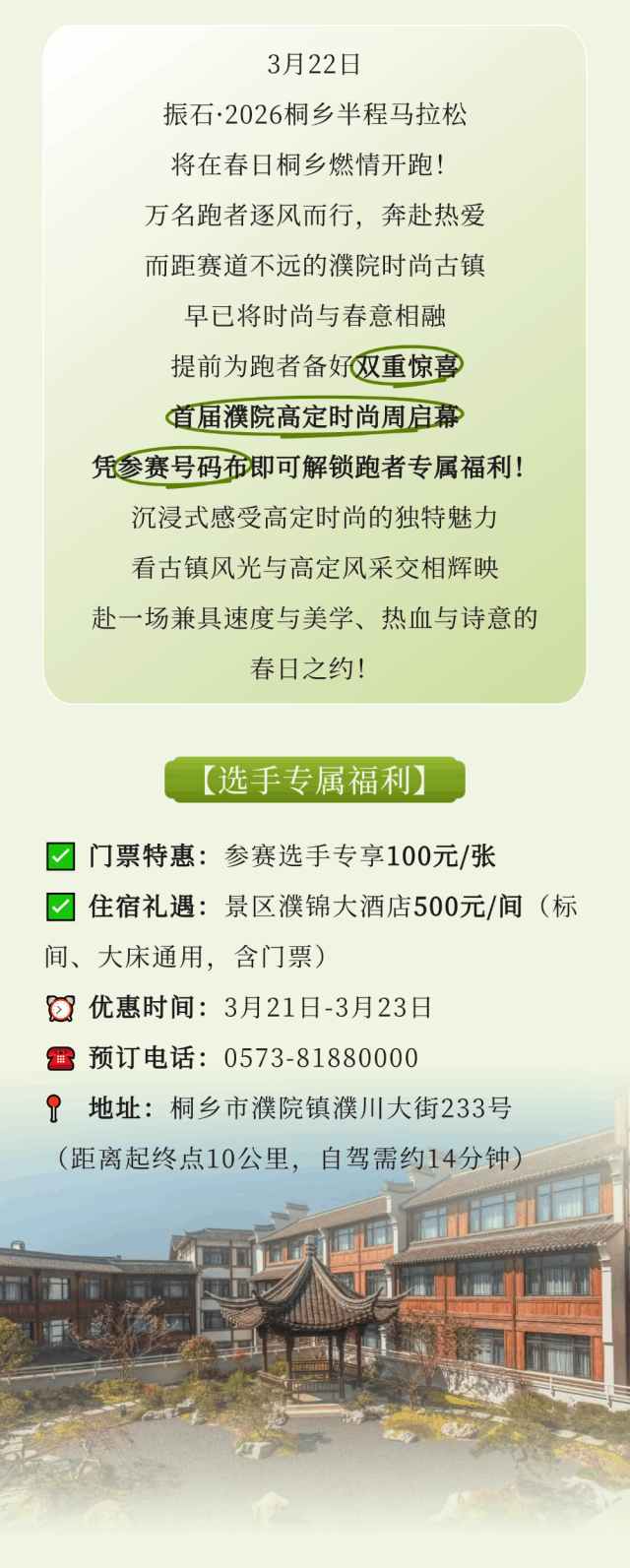 景区福利① | 濮院时尚古镇*振石·2026桐乡半程马拉松春日游福利大放送!