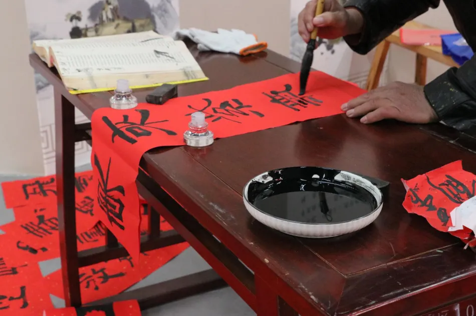 特邀书法爱好者、非遗传承人现场挥毫,书写春联一幅幅红火对联,传递新年祝愿
