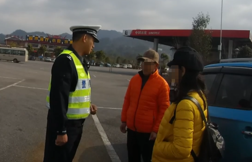 大年初四,正值自驾出游、返程高峰期,高速公路车流量明显增大,黔东南州公安交通管理局高速一大队组织警力在对辖区高速公路进行春运交通安保巡逻,上午10点20分许巡至余册高速丹寨往凯里方向118公里处时,发现一辆蓝色小型普通客车停在应急车道内,车旁还有一对男女正在上演“吵架”闹剧,民警见状,迅速将警车停放在蓝色车后方做好警戒后,下车查看具体情况。