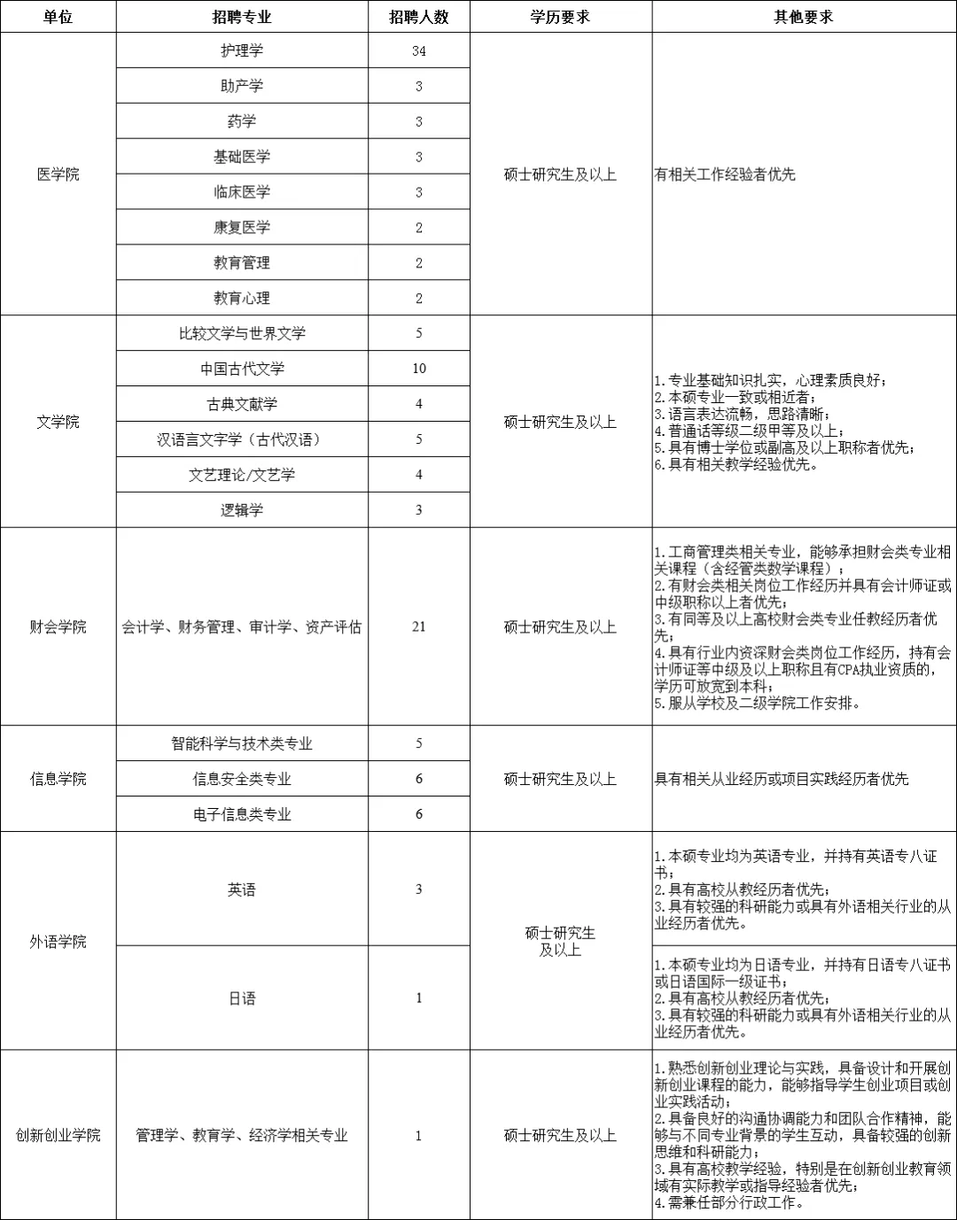 2026年计划招聘自有专任教师126人。具体招聘岗位及条件如下: