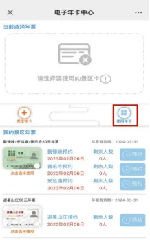 (5)电子年票绑定成功后,进入景区时选择“使用年卡”凭二维码即可进入景区。