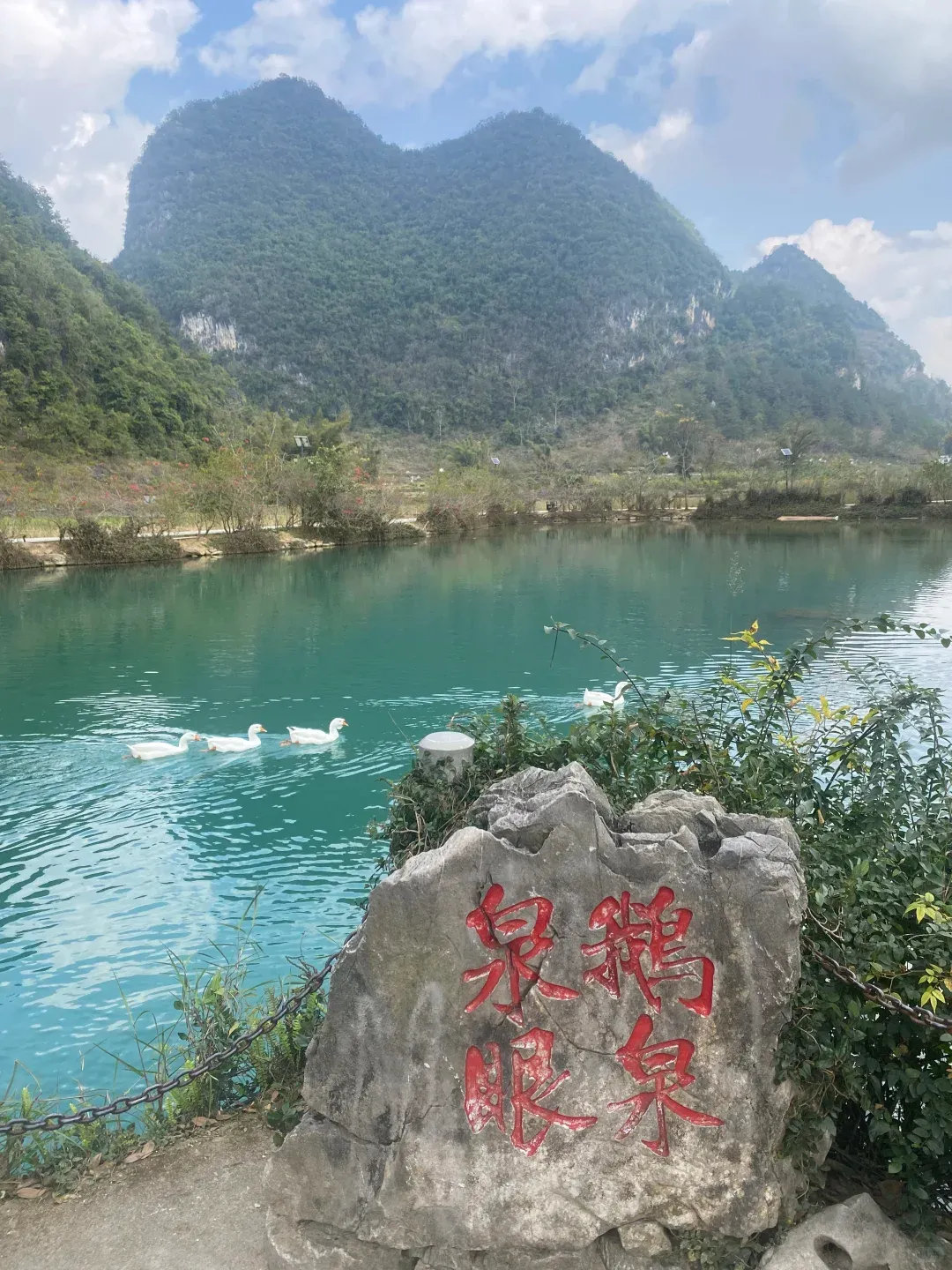 分享几个实用攻略:第一,鹅泉的晨雾很漂亮,建议看一下。第二,鹅泉的竹筏性价比很高,如果你在其他景区没有体验竹筏的话,这里可以坐一下。第三,不要只在下面看,记得爬上半山腰的观景台,鹅泉清澈见底,高处看就像一块碧玉。