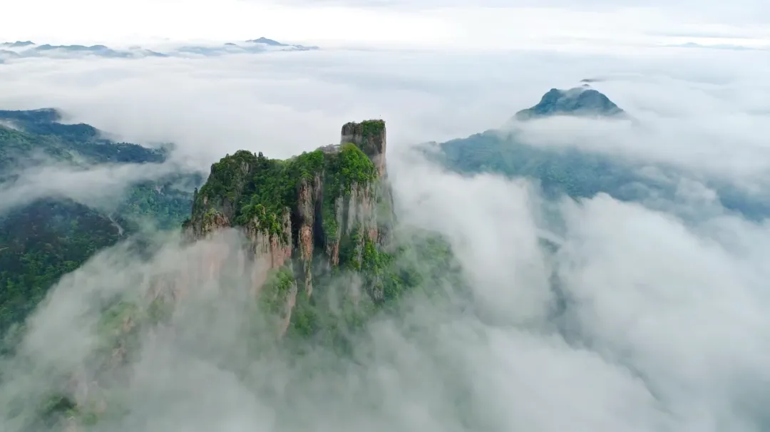 仙华山以“奇、险、旷、幽”著称江南,主峰少女峰海拔720.8米,另有玉尺峰、情侣峰、嫘祖峰等24座奇峰,峰体单柱耸立、犬牙参差,如旌旗、宝莲、铁马临关;14处怪石异洞和120多处景点,岩石色彩斑斓,赤橙黄绿青蓝紫交织成天然“岩彩画”。景区植被覆盖率超95%,空气质量达国家一级标准,有“天然氧吧”之称。