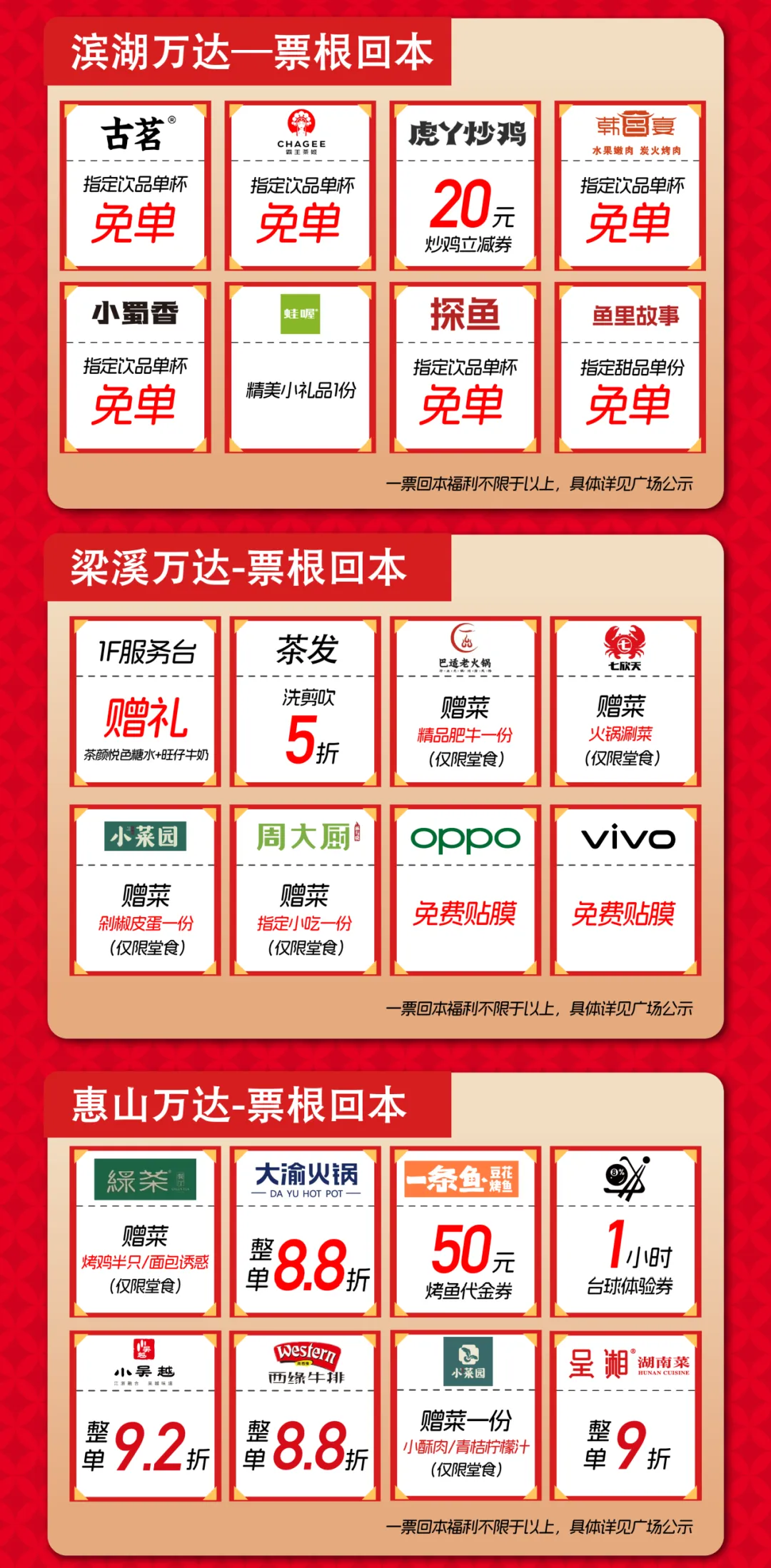 ①到店出示权益码及活动期间票根/电子凭证(影城电影票、返乡车票、无锡景区门票:鼋头渚、惠山古镇、梅园、蠡园、动物园)进行核销即可享受优惠扫码领取专属折扣,权益不与其他品牌门店优惠同享。