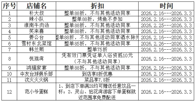2月15日至23日期间:位于大平场驿站的无边咖啡,凭票根所有饮品可享10元优惠;位于桃坞驿站的稻田咖啡,凭票根可享部分饮品6折优惠。