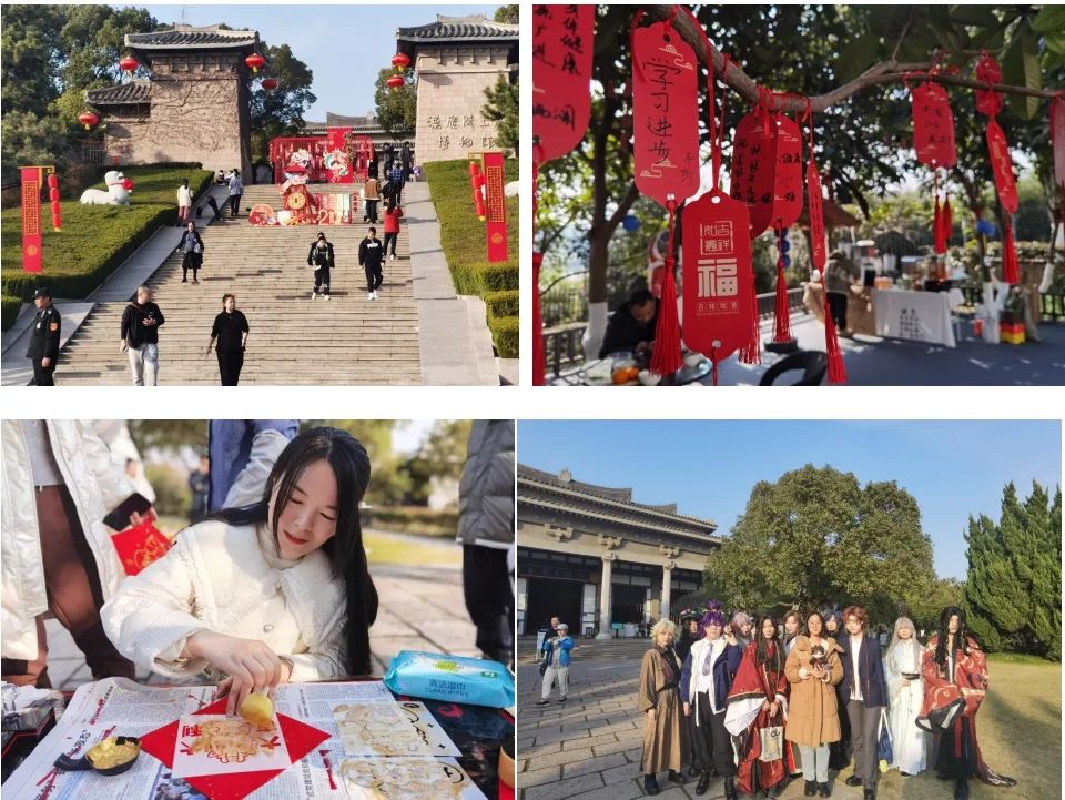 春节期间,唐子城景区通过各种活动庆祝新春,为游客带来浓厚的节日氛围。景区张灯结彩,挂起了红灯笼和中国结,到处弥漫着喜庆的气息。在这里,游客可以体验拓印、剪纸“福”字、打卡古风网红“枇杷园”祈福、参加龙年手工制作等活动,体验传统文化魅力。