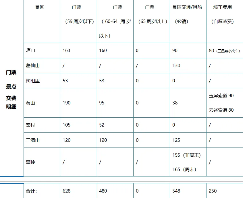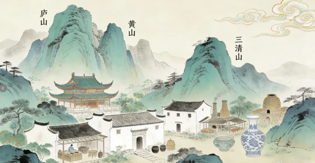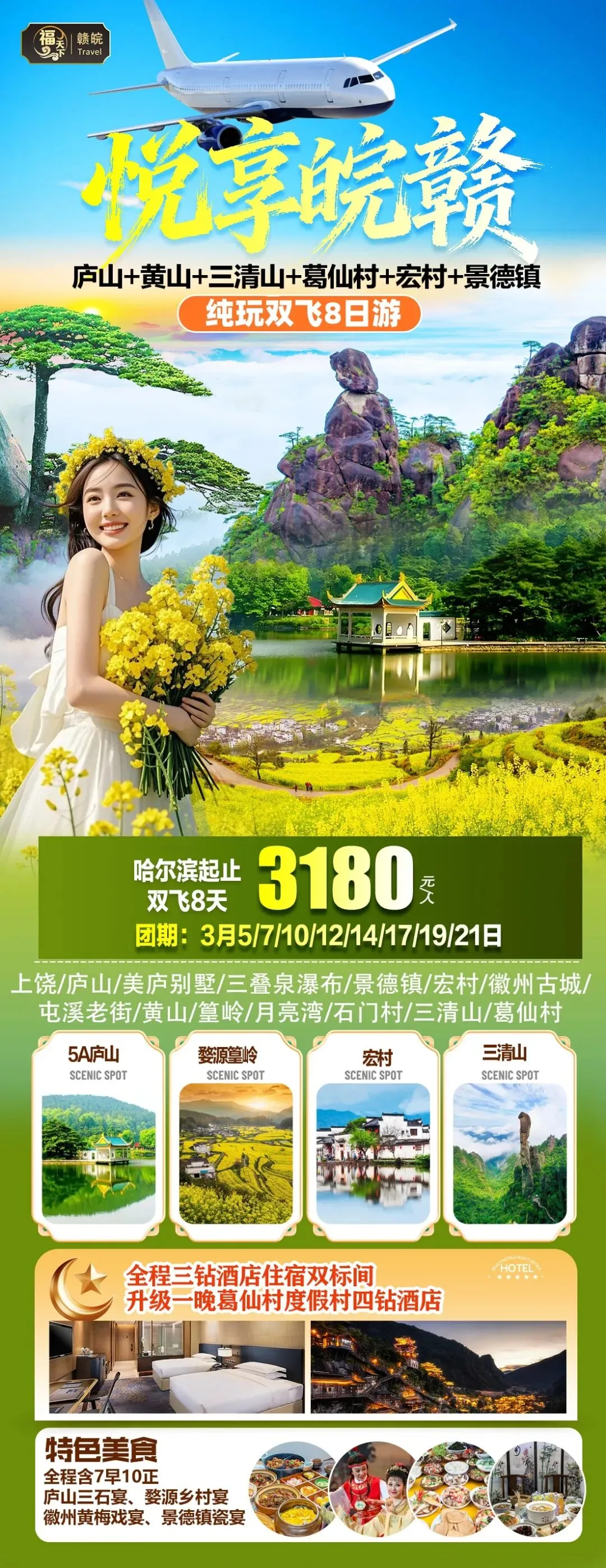 景点:庐山➕黄山➕三清山➕葛仙村➕宏村➕景德镇