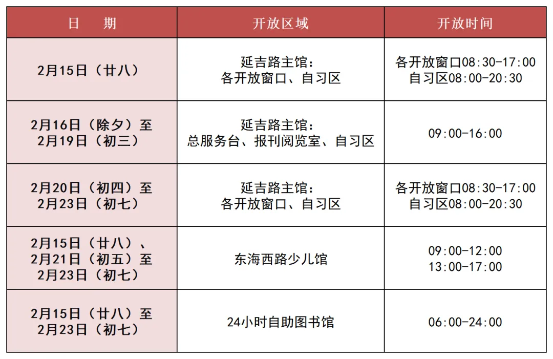 青岛市图书馆春节期间开放安排公告如下: