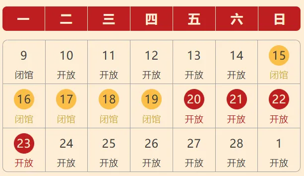 闭馆时间:2月15日至2月18日