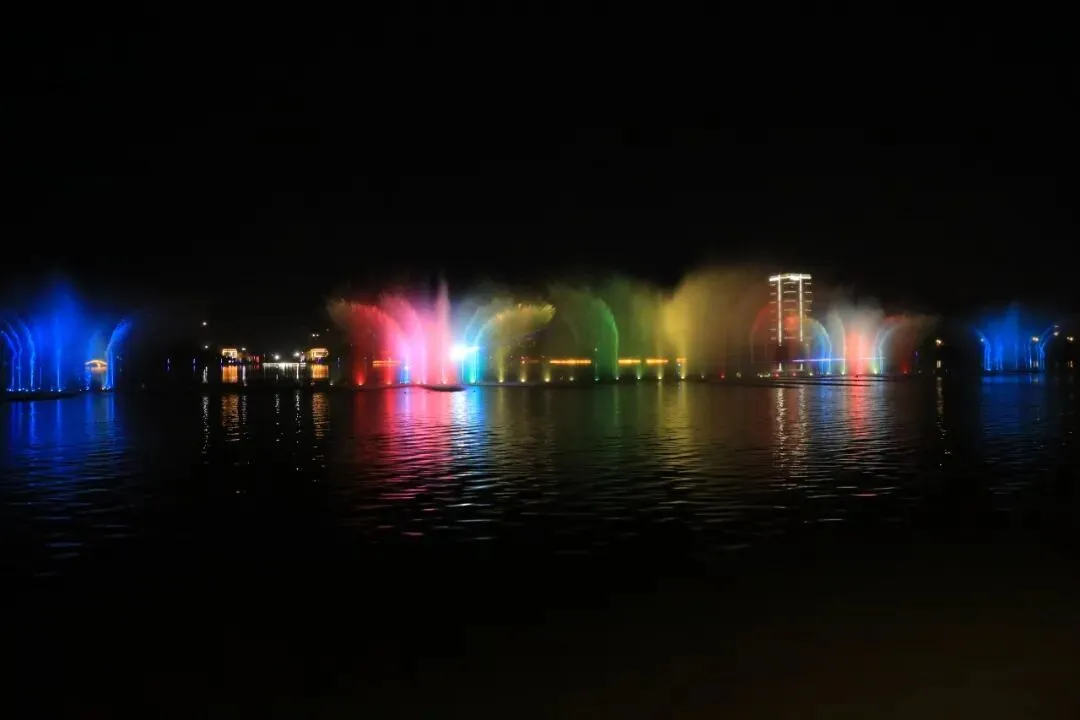 假期结束后,商丘市日月湖景区音乐喷泉播放时间为每周六、周日:19:30—20:30