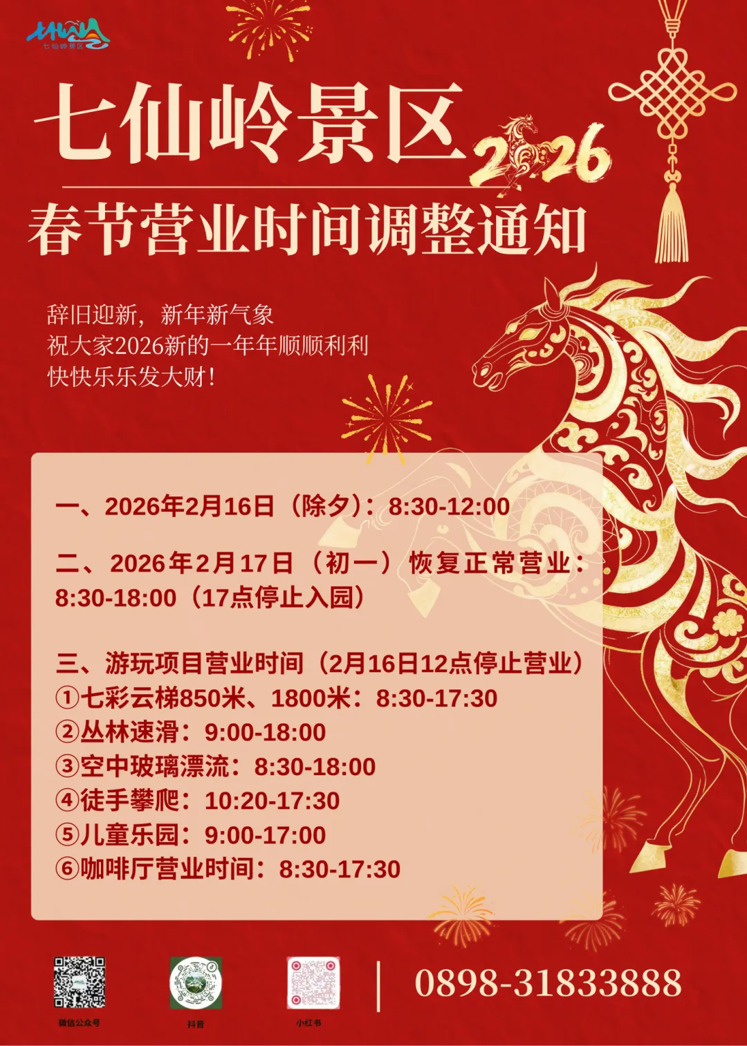 七仙岭景区关于春节期间营业时间调整的通告