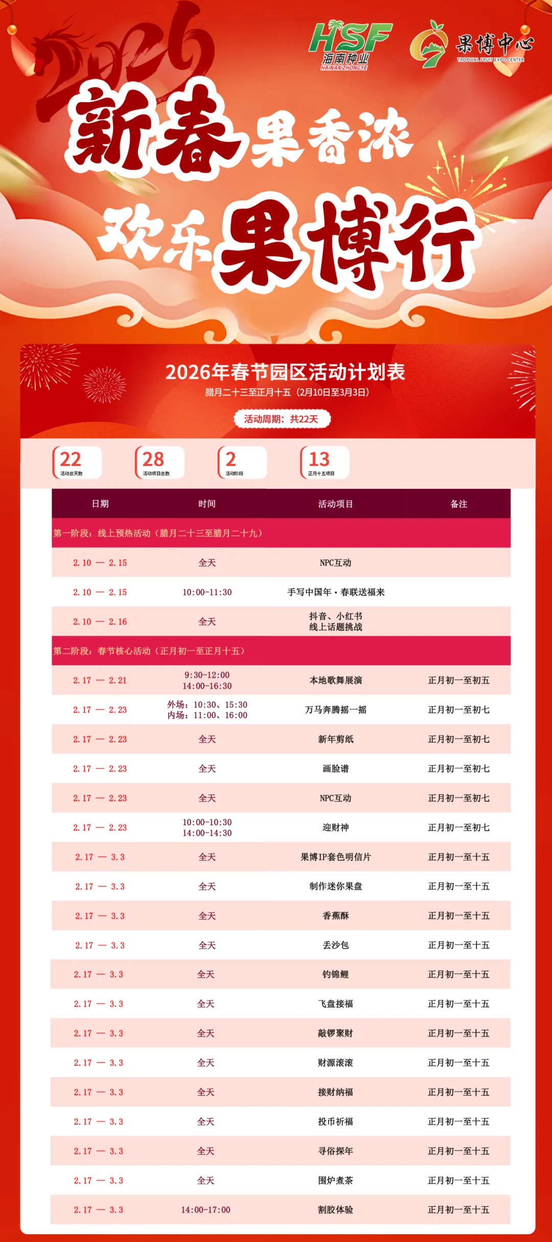 正月初一至十五,每日不同主题体验,全天畅玩不停。适合全家出动、亲子陪伴、朋友相约,在阳光下、果香里,找回热闹温馨的传统年味。