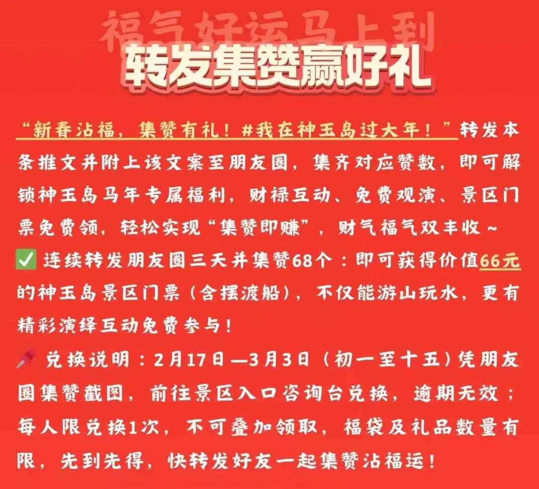 神玉岛景区新春优惠转发集赞赢门票
