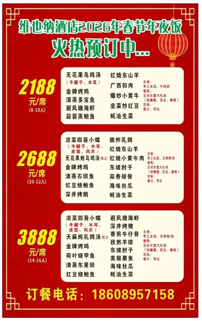 维也纳酒店年夜饭预订持续火爆