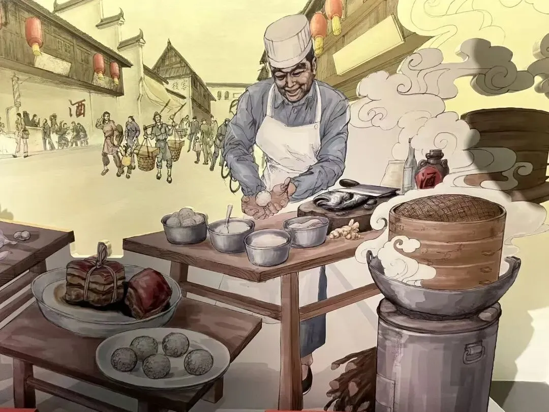 当年乾隆皇帝下江南视察海塘,船到海宁长安镇,微服私访走进农家。农家夫妇将家中唯一一条鲢鱼去骨剁成鱼泥,捏成鱼圆,并将肉皮切碎沾在鱼圆上,然后入镬蒸制。乾隆皇帝品尝后连声称奇,赐名“宴球”从此广为流传。