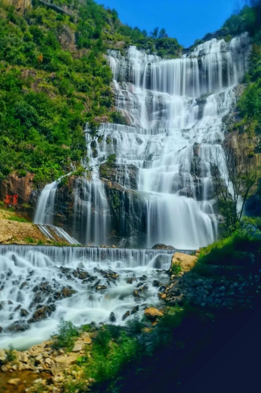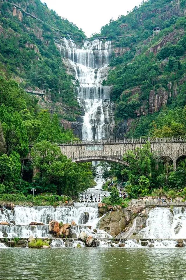 天台山大瀑布为天台山国家级风景区之核心景观,瀑布分九级,高325米,最大宽度95米,堪称“中华第一高瀑”,气势磅礴,千姿百态。