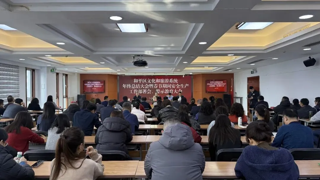 2月12日,和平区文化和旅游局组织召开全系统年终总结大会暨春节安全生产工作部署会、警示教育大会。会上,集中传达学习了市、区和市文旅局关于安全生产、正风肃纪和值班值守有关会议、文件精神,总结2025年我区文旅工作,对春节和全国“两会”期间文旅系统安全生产工作进行全面部署,并开展节前廉洁警示教育。区文旅局领导班子成员,局机关各科室、局属各单位及区文旅专班全体干部参加会议。