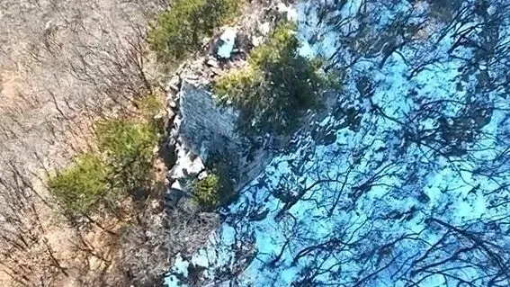 山下的蝴蝶谷,全长2.2公里,是典型的石灰岩峡谷。谷底铺满圆润的卵石,两侧崖壁如刀削斧劈,布满了蜂窝状的溶蚀痕迹。盛夏时节,谷中溪流潺潺,数千只彩蝶在野花丛中翩跹起舞,蓝的、黄的、白的,与青翠的草木相映成趣;雨后的谷中,空气里满是湿润的泥土与苔藓的清香,偶尔还能看到野生菌菇破土而出。冬日的蝴蝶谷则换了一副模样,溪流凝结成冰,崖壁上挂满了长短不一的冰笋、冰柱,阳光照射下,晶莹剔透,宛如水晶宫殿。
