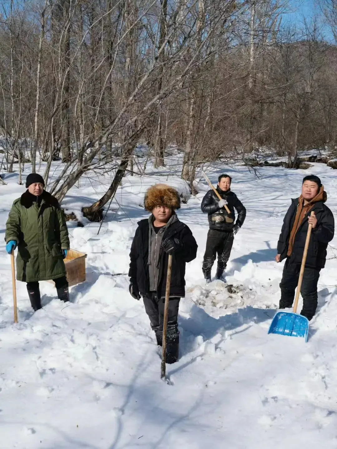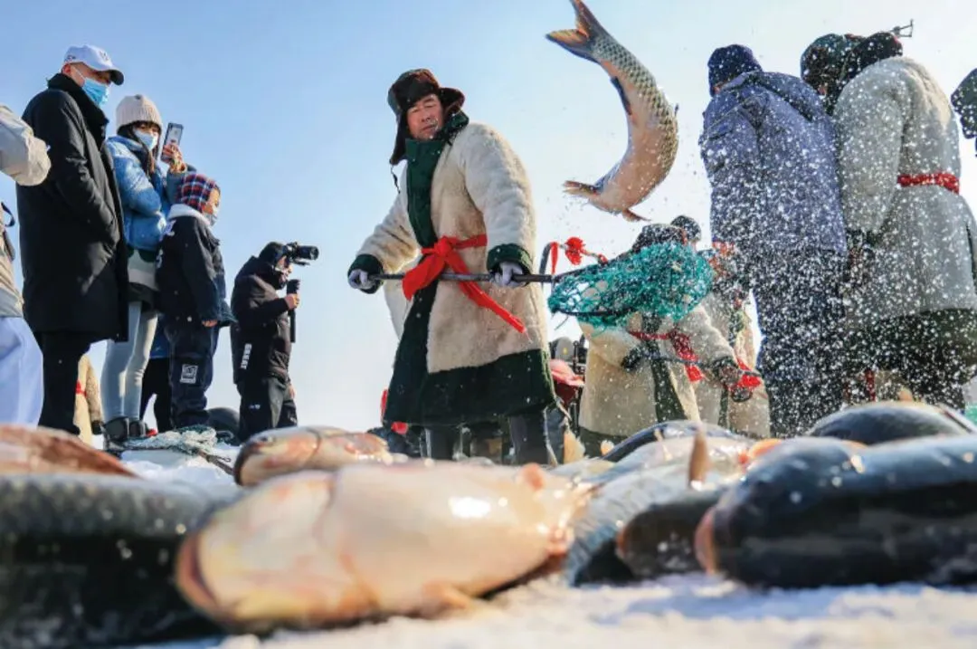 乌苏里江冻得发蓝,冰层很厚,他们挥着冰镩,凿击冰面,“咚咚”声在空旷的江面上传了很远。