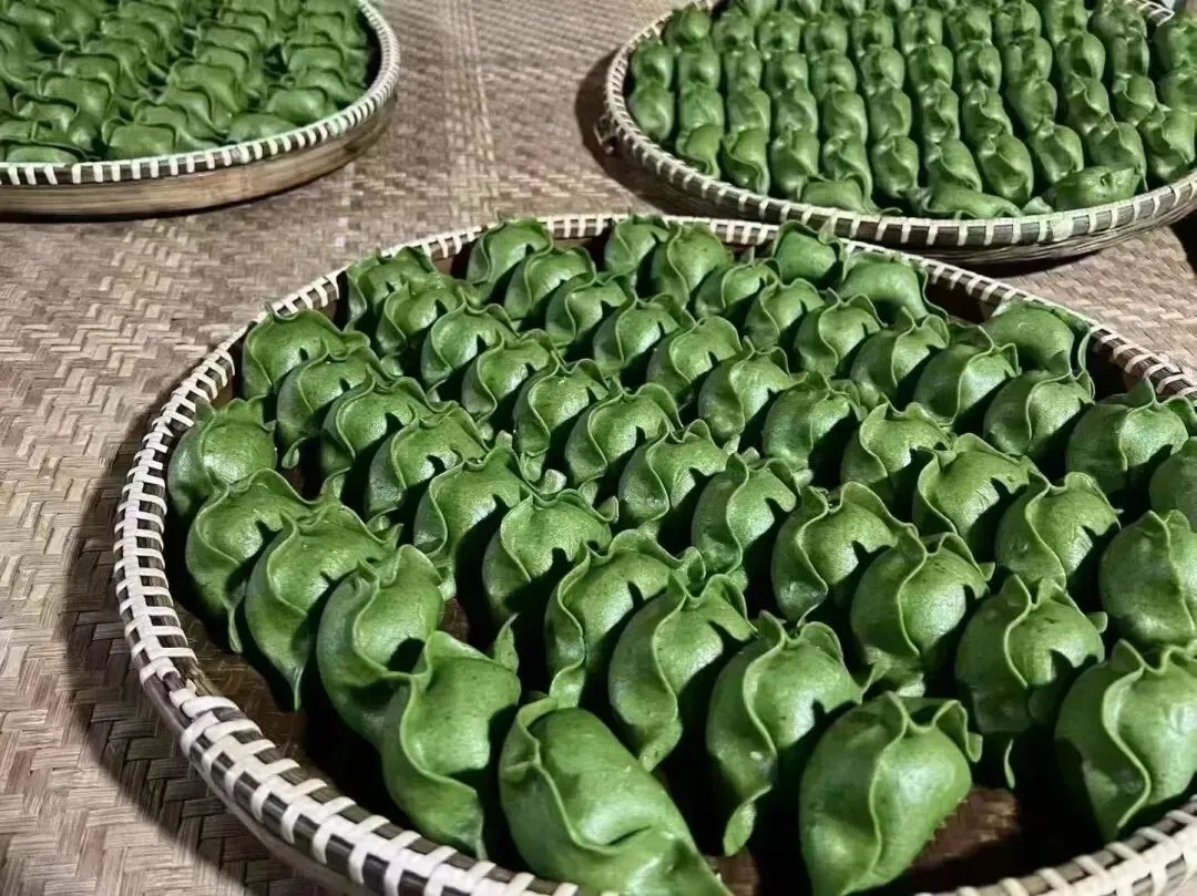 饭桌上一定会出现团圆果,这是诸暨过年最重要的食物之一。用米粉做皮,褶子要捏得整齐,捏出元宝的形状。咸馅是雪菜、冬笋、豆腐、油渣,甜馅是红豆或芝麻。