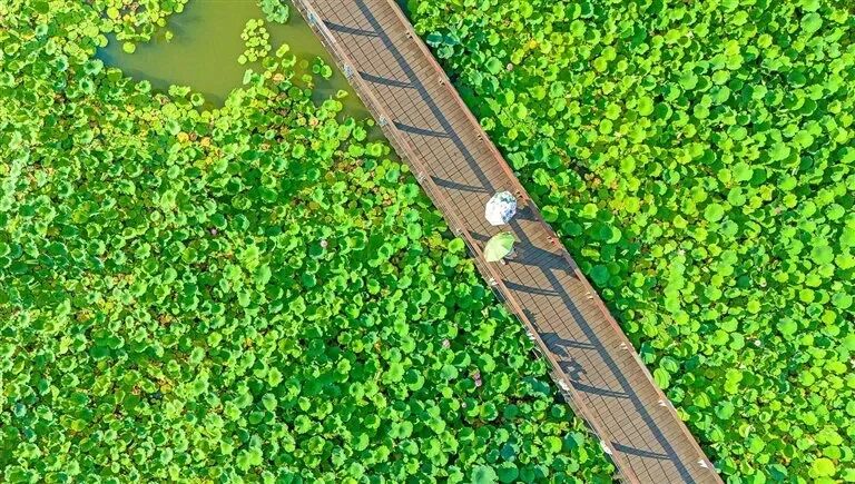 世界荷花博览园四季有景,春有新绿铺地、荷花映湖,园区步道平缓,全程无陡坡,沿途水流潺潺、花海成片,随手就能拍出清新大片。