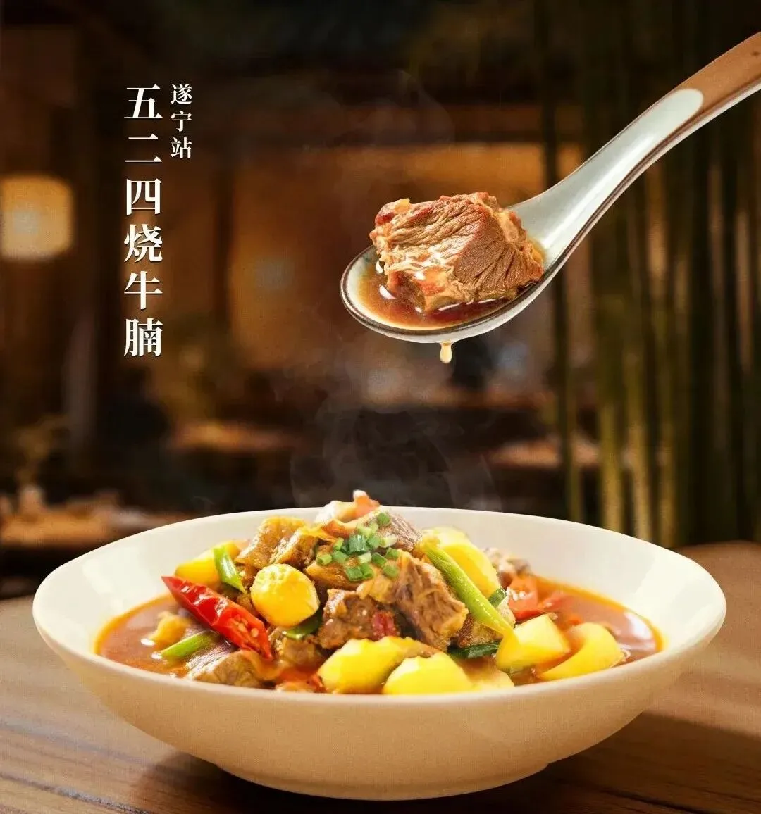 能上央视的红薯,必须是遂宁安居“524红薯”!红薯皮薄肉甜,吸饱牛腩汤汁,酥软香甜的天然甜味与肉香完美融合,咬下去的每一口,都是川中沃土的馈赠~