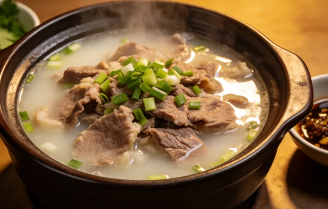 砂锅为器,羊骨打底,羊肉切块入锅,加足量清水,放姜片、葱段,大火煮沸后撇净浮沫,转小火慢炖两三个小时。炖好的羊肉汤澄澈透亮,撒一把翠绿的葱花即可。羊肉软烂脱骨,入口满是浓郁的肉香,汤汁清甜不腻,暖乎乎地喝下去,浑身的寒气瞬间消散。这道汤在罗田人的新年餐桌上,既是对辛劳一年的犒劳,也是祈求家人身体康健的美好祝愿。